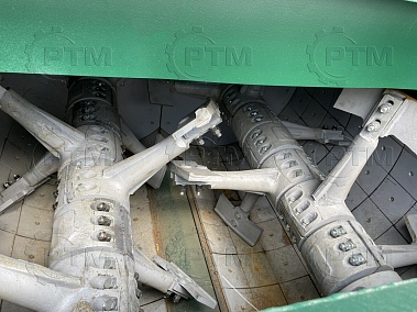 2. Валы и лопасти: вращающиеся валы движутся в противоположных направлениях, создавая силы смешивания. На валах установлены стойки с лопастями, которые перемещают материалы в разные направления и обеспечивают равномерное смешивание. Стойки и лопасти выполнены из высокопрочного износостойкого чугуна, срок эксплуатации два года.