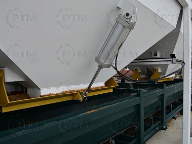 Баки устанавливаются на раме, каждый бак имеет две дозирующие заслонки, на заслонку установлен пневмоцилиндр, он отвечает за открытие и закрытие заслонки. Так же бункеры оборудованы вибродвигателями Oli MVE/300 (Италия), они необходимы для встряхивания инертного материала.