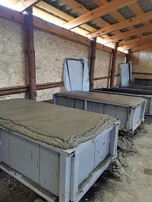 Борт форм образует форму для газобетонного массива с габарита 1200*600*300 (д*ш*в) мм, стандартно это 6 блоково шириной 200 мм. Форма выполнена из профильной трубы с листовым металлом, толщиной 2 мм. Для простоты сборки формы на ней установлены эксцентриковые замки (4 шт). Имеется паз для центровки бортов на поддоне форм (основание формы). После установки бортов на поддон форм, форма полностью готова к заливке газобетонной смеси.