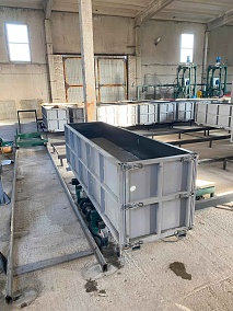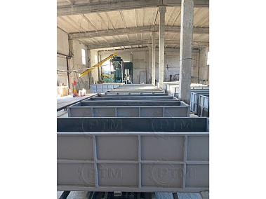 Борт форм образует форму для газобетонного массива с габарита 2400*600*300 (д*ш*в) мм, стандартно это 12 блоково шириной 200 мм. Форма выполнена из профильной трубы с листовым металлом, толщиной 2 мм. Для простоты сборки формы на ней установлены эксцентриковые замки (8 шт). Имеется паз для центровки бортов на поддоне форм (основание формы), а так же данные борта форм оснащены резиновым уплотнителем для герметизации собранной формы. После установки бортов на поддон форм, форма полностью готова к заливке газобетонной смеси.