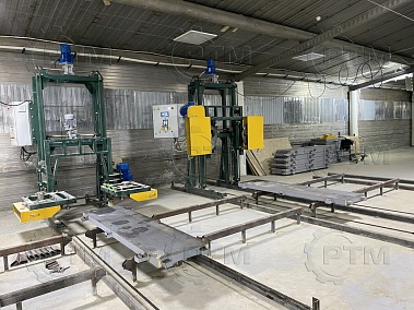 Данные рельсовые пути выполнены из профильной трубы, рельсовые пути на стойках используются для перемещение конвейерных оснований, рельсовые пути без стоек- это пути для перемещение передаточной тележки, с ее помощью конвейерные основания перемещают между камерами созревания и сушки массивов. Рельсовый путь крепится к бетонному основанию анкерами.