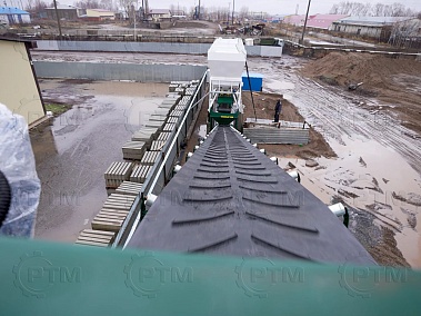 Ленточный конвейер имеет рамную конструкцию с фермами. В нижней и верхней части ленточного конвейера устанавливаются барабаны с футеровкой, ведущий барабан приводится в движение при помощи червячного мотор-редуктора. Конвейерная лента шевронная закрытого типа. В нижней части конвейера имеется приемный бункер, конвейер имеет от бортовку, это необходимо чтобы инертные материалы не просыпались с ленточного конвейера при транспортировки инертных материалов в бетоносмеситель. Все конвейерные ролики оцинкованные.