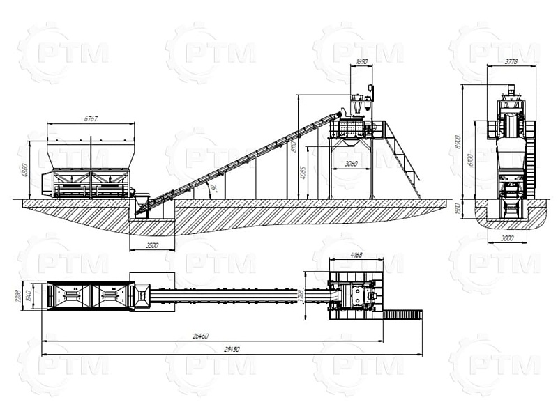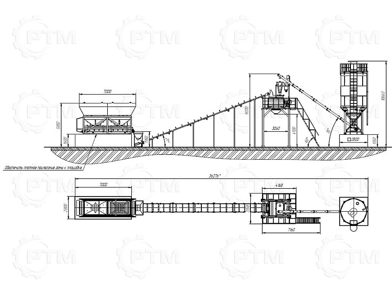 2. После набора нужного количества материалов инертные попадают на наклонный ленточный конвейер с шевронной лентой. Ширина ленты 600 мм, длинна конвейера 16 метров.