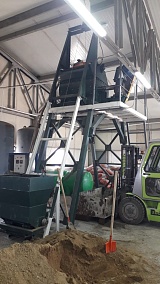 Взвешивание щебня и песка происходит с помощью весовой площадки, оператор насыпает щебень и песок в скиповый бак, вес загружаемого материала отображается на весовом терминале. Вода набирается с помощью счетчика воды.