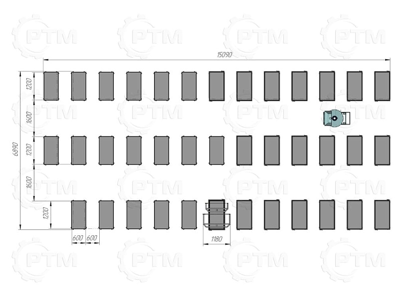 Линия этого исполнения, не превышает производительности 15 м3/сутки. Производительность зависит от количества форм для заливки газобетонной смеси.