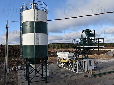 Силос цемента предназначен для хранения цемента на площадке. Силос принимает цемент по трубе закачки от цементовоза, сохраняет его от внешних воздействий. Далее цемент подается при помощи шнекового конвейера на блок дозаторов. На блоке дозаторов взвешивается и попадает в производственный цикл бетона на бетонном заводе.