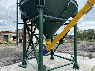Силос цемента предназначен для хранения цемента на площадке. Силос принимает цемент по трубе закачки от цементовоза, сохраняет его от внешних воздействий. Далее цемент подается при помощи шнекового конвейера на блок дозаторов. На блоке дозаторов взвешивается и попадает в производственный цикл бетона на бетонном заводе.