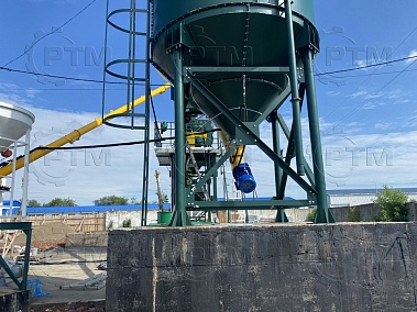 Силос цемента предназначен для хранения цемента на площадке. Силос принимает цемент по трубе закачки от цементовоза, сохраняет его от внешних воздействий. Далее цемент подается при помощи шнекового конвейера на блок дозаторов. На блоке дозаторов взвешивается и попадает в производственный цикл бетона на бетонном заводе.