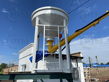 5. Склад цемента и подача в блок дозаторов. При необходимости завод комплектуется складом цемента (силосом или расстаривателем биг бэгов). Силос или расстариватель биг бэгов (опция) необходим для хранения цемента и различных сухих смесей. Транспортировка из силоса происходит с помощью шнекового конвейера. Силос необходимо подбирать из расчета трехдневного запаса цемента.
