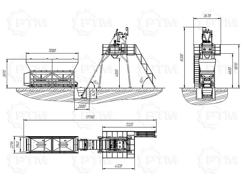 Скиповый бетонный завод с двухвальным бетоносмесителем — это производственное оборудование, которое используется для смешивания и производства бетонной смеси с высокой производительностью и качеством, завод автоматический, принцип “одна кнопка” Он состоит из следующих основных компонентов: