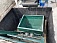2. После набора нужного количества материалов инертные попадают в скиповый бак, далее скиповый бак поднимается и высыпает материалы в бетоносмеситель.
