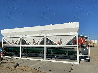 1. Дозирующий комплекс СТ-20 (2 секции по 10 м3): состоит из двух до четырех бункеров для хранения инертных материалов (щебень, песок, отсев). На каждом бункере имеется два пневмо- затвора, необходимых для точной дозации материалов. При дозировании материалы попадают на весовой ленточный конвейер, весовые датчики фирмы CAS Ю.Корея, при наборе нужного количества материалов, заслонки закрываются, подача прекращается. Объем каждого бункера от 2,5 м3 до 20 м3, в зависимости от комплектации завода. Каждый бункер оснащен вибродвигателем MVE 300/3.