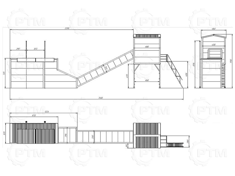 2. После набора нужного количества материалов инертные попадают на наклонный ленточный конвейер с шевронной лентой. Ширина ленты 600 мм, длинна конвейера 16 метров.