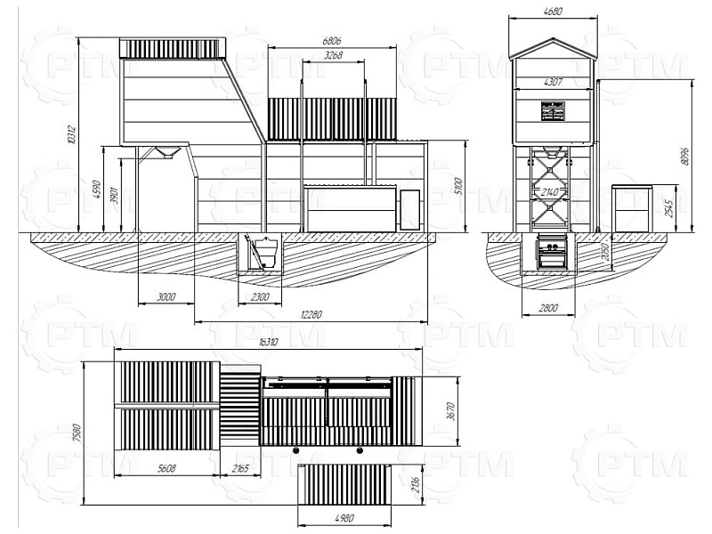 4. Блок дозаторов РТМ-45 (цемента- 550 кг, вода 300 л, химия 30 л). Тут привходит дозирование цемента, воды и различных добавок. Во время смешивания в бетоносмесителе также можно добавлять различные добавки, такие как пластификаторы, красители или вяжущие вещества. Они дозируются и подаются в бетоносмеситель, чтобы обеспечить требуемые свойства бетонной смеси. Каждый дозатор расположен на трех весовых датчиках, фирмы CAS Ю.Корея. Это обеспечивает высокий уровень дозации материалов.