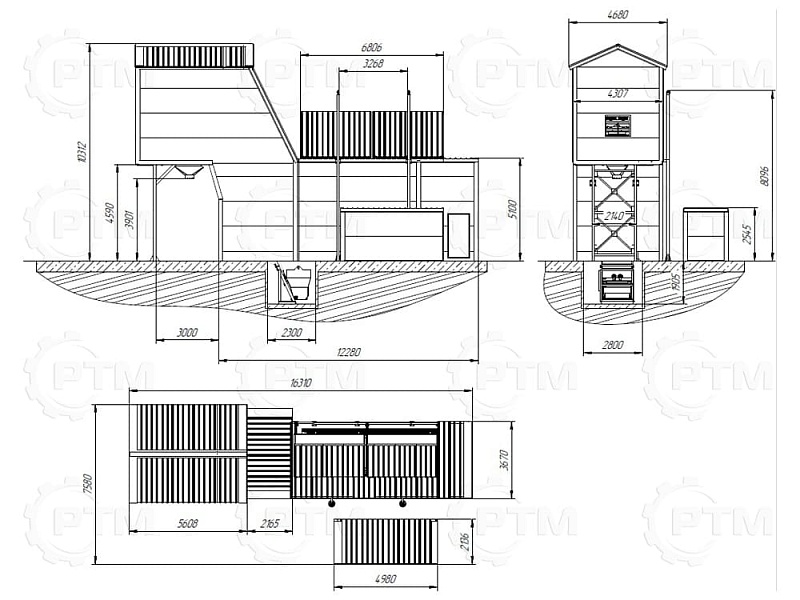4. Блок дозаторов РТМ-60 (цемента- 650 кг, вода 400 л, химия 40 л). Тут привходит дозирование цемента, воды и различных добавок. Во время смешивания в бетоносмесителе также можно добавлять различные добавки, такие как пластификаторы, красители или вяжущие вещества. Они дозируются и подаются в бетоносмеситель, чтобы обеспечить требуемые свойства бетонной смеси. Каждый дозатор расположен на трех весовых датчиках, фирмы CAS Ю.Корея. Это обеспечивает высокий уровень дозации материалов.